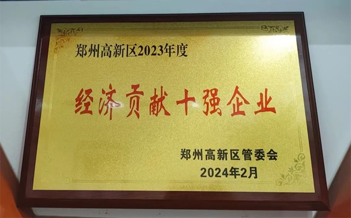 鄭州高新區(qū)2023年:經(jīng)濟(jì)貢獻(xiàn)十強企業(yè)的獎項。