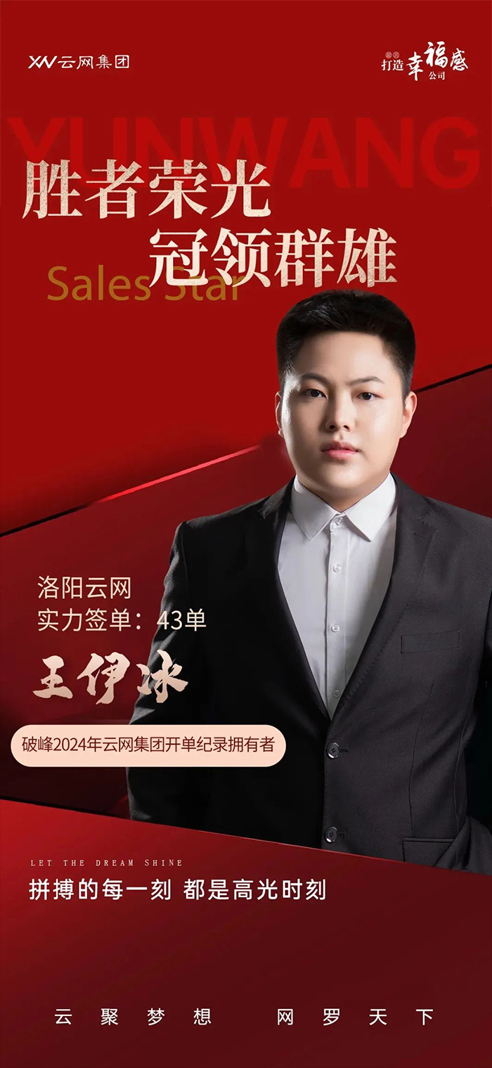 4月,云網(wǎng)集團(tuán)分公司洛陽云網(wǎng)文化傳媒有限公司的銷售經(jīng)理王伊冰憑實力簽下43單,