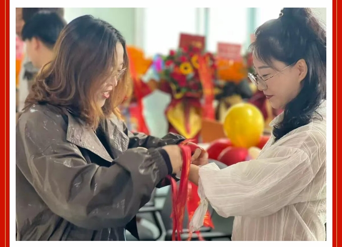 為員工系上寓意吉祥的紅繩
