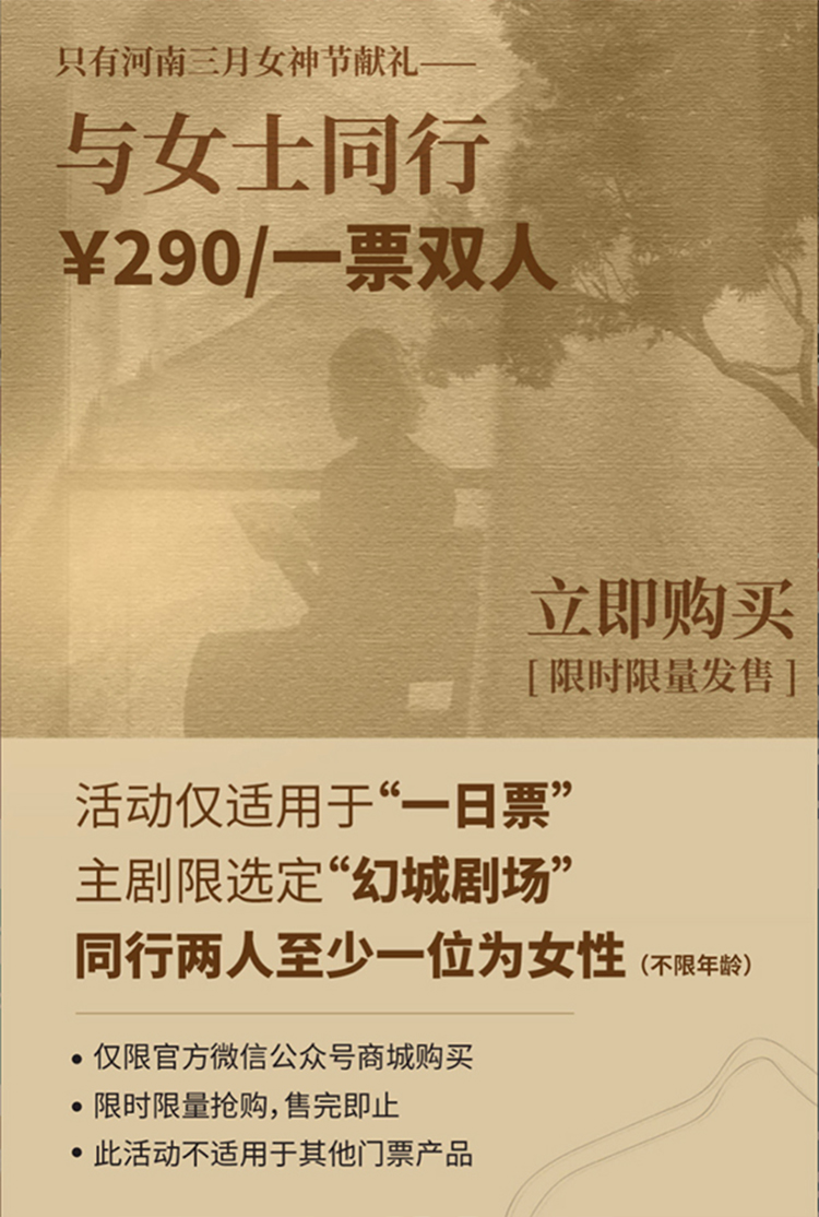 門票優(yōu)惠:290元/一票雙人(至少一位女性)。