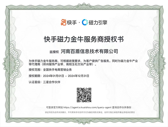 快手磁力金牛三星服務商(全國最高星級)”,