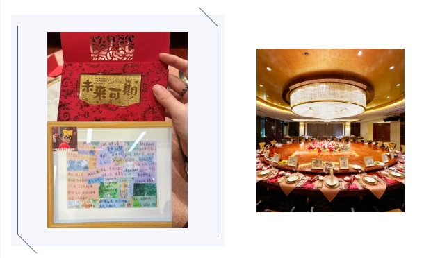 在就坐位置擺放“記錄他人眼中優(yōu)秀的你”專屬相框及金鈔紅包,再次為大家?guī)眢@喜。
